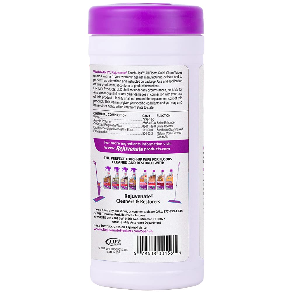 Rejuvenate All Floors Quick Clean Wipes, Wet Wipes For Small Messes on Floors, Cabinets, Furniture And More (30 Wipes)